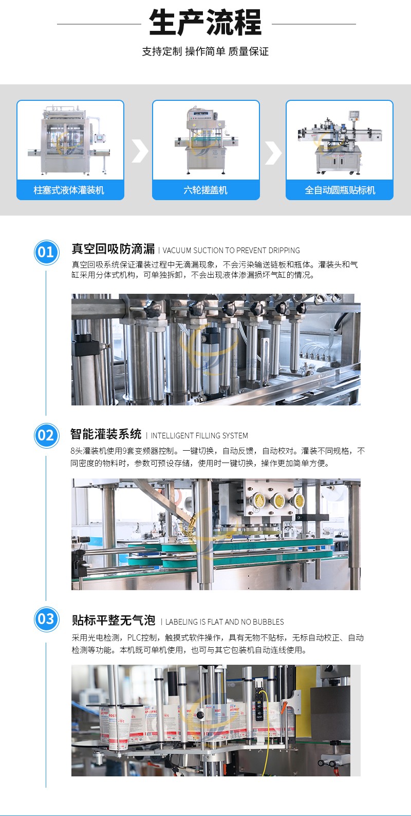六頭柱塞灌裝生產(chǎn)線適用于燕窩、果醬、枇杷膏、涼茶、燕麥粥等粘流體中帶小顆粒并且可流動(dòng)的較為粘稠的物料灌裝。