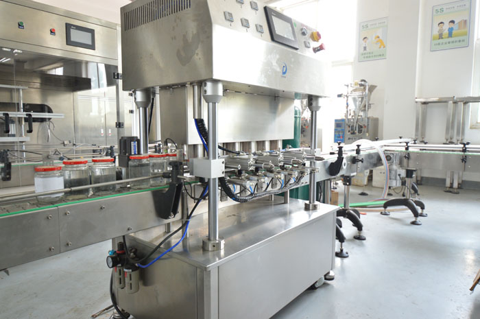 罐頭真空封蓋機用于調味品醬、水產罐頭、水果罐頭等采用目前環保的玻璃瓶包裝后對瓶內真空度有比較高要求的三旋、四旋蓋的玻璃瓶進行封蓋,本機配上真空系統后,能先對玻璃瓶內進行抽吸真空,然后再進行旋蓋封口,以延長瓶內容物的保質期及增強口感,而且不用加熱以保持物料色澤不變。實行自動進瓶、自動封蓋、自動進行抽真空。